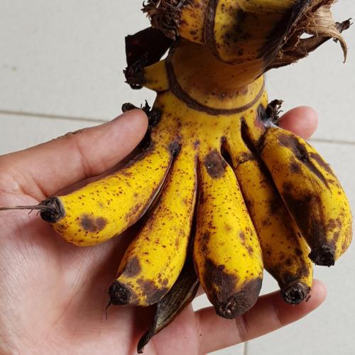 Pisang Susu is very small, the size is about three adult fingers clumped together. The taste is good, sweet and the size is just nice for snacking. The banana skin is thinner than Cavendish.