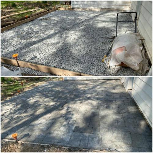 The old patio finally got ripped up, so the guys are working on a new patio and landscaping for mom. One of my zinnia plants is about to bloom very soon.