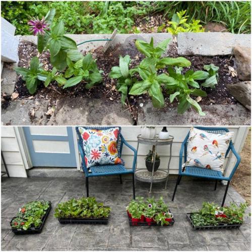 Did so much in the yard. Another landscaper came and cleared out bed in the front yard. I transplanted some plants. I got four trays of various flowers my neighbor grew from seeds. Mom and I planted several plants into our pots as well. When I was transplanting a plant, I accidentally scared a toad by scooping it up, thinking it was part of my plant until it jumped out. Mom freaked out, and I went to try to catch the toad to make sure they’re unharmed. I also suspect the previous owner’s favorite color is pink, which I like.