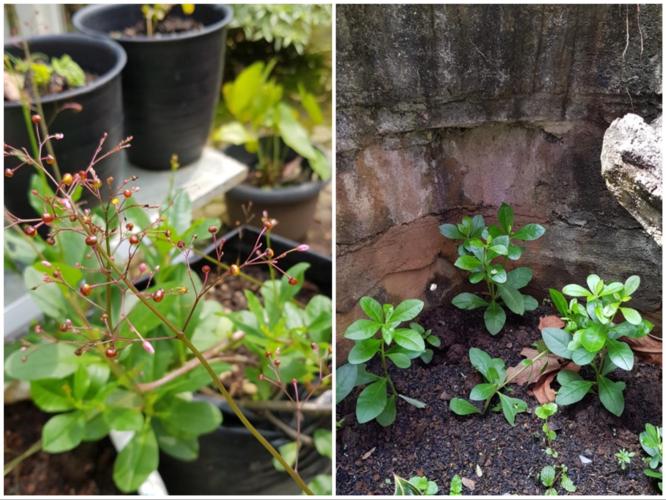 Ginger, so useful for many kinds of purposes. It makes a good drink on cold days, treats cold symptoms [1], and is used in many kinds of cooking as a spice. I usually have spare ginger that starts sprouting and I feel bad if I don’t grow it. So most of the ginger plants I grow come from kitchen scraps. I use them for cooking, for the most part. I also like to bruise them, then boil in hot water for a warming drink. The spicy effect is caused by gingerol [1]. It is also used as a companion for sushi, as pickled ginger or ‘gari’. I have three ginger varieties, white ginger (Zingiber officinale var officinarum), red ginger (Zingiber officinale var rubrum) and small ginger (Zingiber officinale var. amarumdengan). They have slight differences. The common one, Zingiber officinale var officinarum is the big ginger, it tastes less intense than the small ginger. I use both for traditional Indonesian cooking. Red ginger is incorrectly rumored to have higher medicinal properties, so it’s more expensive. The plants look the same when they grow, although var. rubrum has bigger leaves compared to the others. They also grow well under shade.
