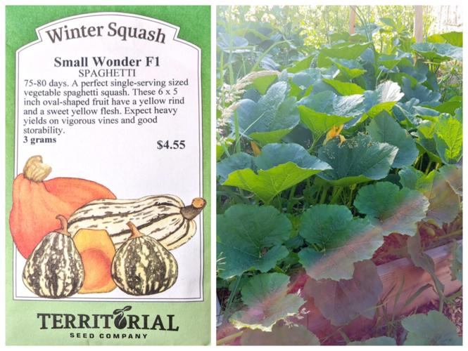‘Small Wonder’ spaghetti squash — I like spaghetti squash. I LOVE these ones in particular. My favorite two traits? They grow a little more spherical and a bit more sweet than your supermarket spaghetti squash. Their size is a perfect "dinner for two" (about the size of one of those tiny trash can hoop basketballs.) The plant gets big and sprawls heavily if it's happy with its conditions. Last year, one plant filled three paper grocery bags with squash that I'm still trying to pawn off on friends and family. (Each one is around two pounds, I'd say around 30 lb of squash from one massive vine.) It was the third year I grew these and I collected seeds to see if I could select for the rainy Pacific Northwest. This is a hybrid varietal, so the seed I saved might have been cross pollinated. Overall, ‘Small Wonder’ squash is nonplussed by heavy rain, hot dry weeks and intermittent conditions as long as the plants get full sun.