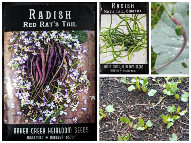 Also, the seeds you sprout that you need to thin? Radish sprouts are tasty, just saying! Additional note — you can eat the seed pods from standard radish, Raphanus raphanistrum, TOO! They're gonna be more spicy, and more watery-crunchy than rat’s tail, which are a little more tender-crunchy like a green bean.)