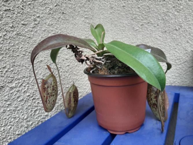 As with lighting, Nepenthes are extremely flexible with the variety of soils they will tolerate. Soil ingredients may include sphagnum moss, perlite, peat moss, orchid bark, akadama and other clays, coconut bark, sand, and pumice. Beware that some brands of these ingredients contain fertilizers which will kill Nepenthes. All ingredients within their soil should be low in nutrient content. Sphagnum moss is by far the most common and popular substrate, with many growers using only pure sphagnum and nothing more. Sphagnum moss mixed with about a third perlite or pumice allows for improved drainage and is preferable. Certain Nepenthes such as N. rajah demand mixes including high mineral content and exhibit limited success when grown in a mix of purely organic substrates. Two soil additives that are more controversial are coconut coir and peat moss. Coconut coir has been known to contain dangerous levels of salt for Nepenthes while peat moss has extremely poor drainage and should never be used as the majority in a mixture. When potting Nepenthes, you may choose plastic pots with drainage or net pots. Terracotta has been known to occasionally kill Nepenthes due to the minerals it contains. Pot size is generally better kept small and plants tend to only need repotting well after their leafspans double the width of their pots. You will know repotting is necessary when there are roots visible through the drainage holes of the pot.